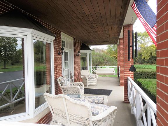 Welcome to quality & craftsmanship throughout this all brick, one owner 5.76 acre county estate. Custom built by a very reputable commercial contractor for his own family. Enjoy the changing seasons on the open covered front porch. Enter the sunny foyer that leads to a spacious living room with natural fireplace and adjoining garden view dining room. Completing the first floor is a private office, half bath, large country eat in kitchen, pantry and first floor laundry. Upper includes 4 over sized bedrooms, full bath and mater bedroom with en suite and huge second story deck with panoramic views. Lower level has extra tall ceilings, family room and workshop with lots of storage. Bulkhead entrance stairway leads to the backyard. Kitchen breezeway leads to the garage, shed and huge wrought iron fenced in back yard. Several tillable acres. One large animal (horse, cow, goat) allowed or a flock (20 or less) of chickens or geese.