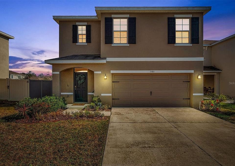 One or more photo(s) has been virtually staged. SIGNIFICANT PRICE IMPROVEMENT NOW $20,000 LOWER! PLUS THE SELLER IS OFFERING A $7,500 CREDIT TOWARD BUYER'S CLOSING COSTS WITH AN ACCEPTED OFFER BY MARCH 31ST. Don't miss this incredible opportunity! Welcome to 1580 Bering Rd, a spacious 5-bedroom, 3-bathroom home in the highly sought-after Union Park community of Wesley Chapel. This nearly 2,500 sq. ft. home sits on an oversized homesite with a fully fenced backyard and stunning pond views that greet you immediately upon entering the home through the elegant foyer. Built in 2020 by DR Horton, this young construction home features block-on-block construction, a rare and superior building method that provides exceptional strength and durability. The freshly painted interior enhances the bright and open-concept design where the kitchen, dining area, and great room, flow seamlessly together, making it perfect for both everyday living and entertaining. The modern kitchen is equipped with granite countertops, stainless steel appliances, an oversized walk-in pantry, and a spacious island. The main level features tile flooring throughout, a full bedroom and bathroom, and abundant natural light. Upstairs, luxury vinyl plank flooring extends throughout the additional living spaces, including a spacious loft, three secondary bedrooms, a full bathroom, and the primary suite. The primary bedroom offers a peaceful retreat with an ensuite bath featuring dual sinks, a large walk-in shower, and a generous walk-in closet. Union Park offers top-tier amenities, including two resort-style clubhouses, a lap pool, a resort-style pool, a splash pad, a dog park, a covered pavilion, a playground, scenic nature trails, and a community garden. The HOA also includes ultra-fast Wi-Fi and cable for added convenience. Located in Wesley Chapel, this home is just minutes from Wiregrass Ranch shopping, dining, entertainment, top-rated schools, and exceptional healthcare. Don't miss this opportunity!