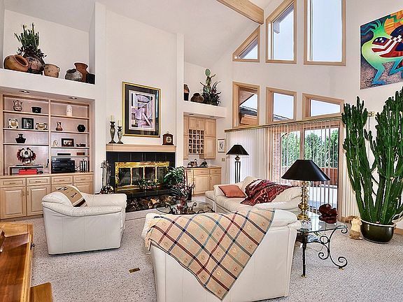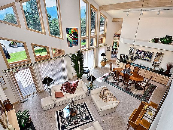 Terrific 3 bedroom + study, 4 bath home offers large rooms, tons of natural light and great views of Pikes Peak and the golf course. The great room offers a fireplace, built-ins, walkout and adjoining dining room. The large kitchen includes an island, breakfast area and pantry. The main level also offers a study with great built-ins, master suite with walk-in closet, adjoining private bath, fireplace and walkout to covered deck. The second main level bedroom also includes an in-suite bath. The upper level overlooks the golf course, the great room and includes sensational views along with an adjoining private bath and walk-in closet. The 2 car oversized garage also provides a golf cart garage. The outdoor spaces feature a front courtyard with views of the golf course and a spacious partially covered deck off the main level with sensational views.