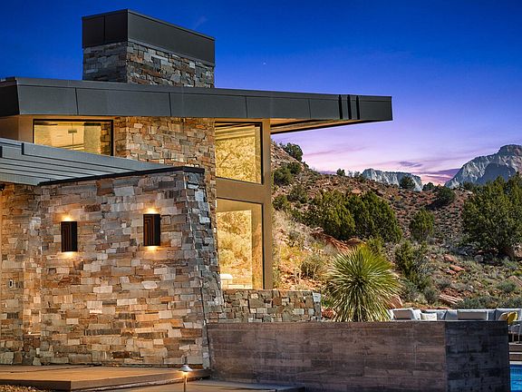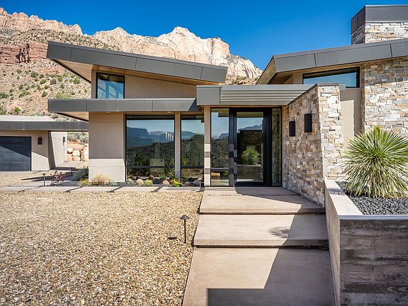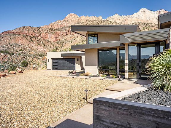 Extraordinary in every way!! This custom built home by renowned architect Burke Cartwright is nestled between Zion National Park boundary and conservation land ensuring privacy and views galore. Main home has 3 bdrms/3.5 baths with a detached casita that is perfect for entertaining. Thermador kitchen appliances and quartzite countertops finish the look with rift oak cabinetry. Triple sliding door opens to the outdoor BBQ kitchen and heated pool with spa, enticing all to enjoy what Zion has to offer. Green features of tankless water heater, zoned HVAC, and built in electric car charging port. Lutron lighting, Cat 5 wiring, satellite WIFI and surround sound throughout entire home inside and outside. So much more with such little space to write it all!! Home to be sold Turnkey
