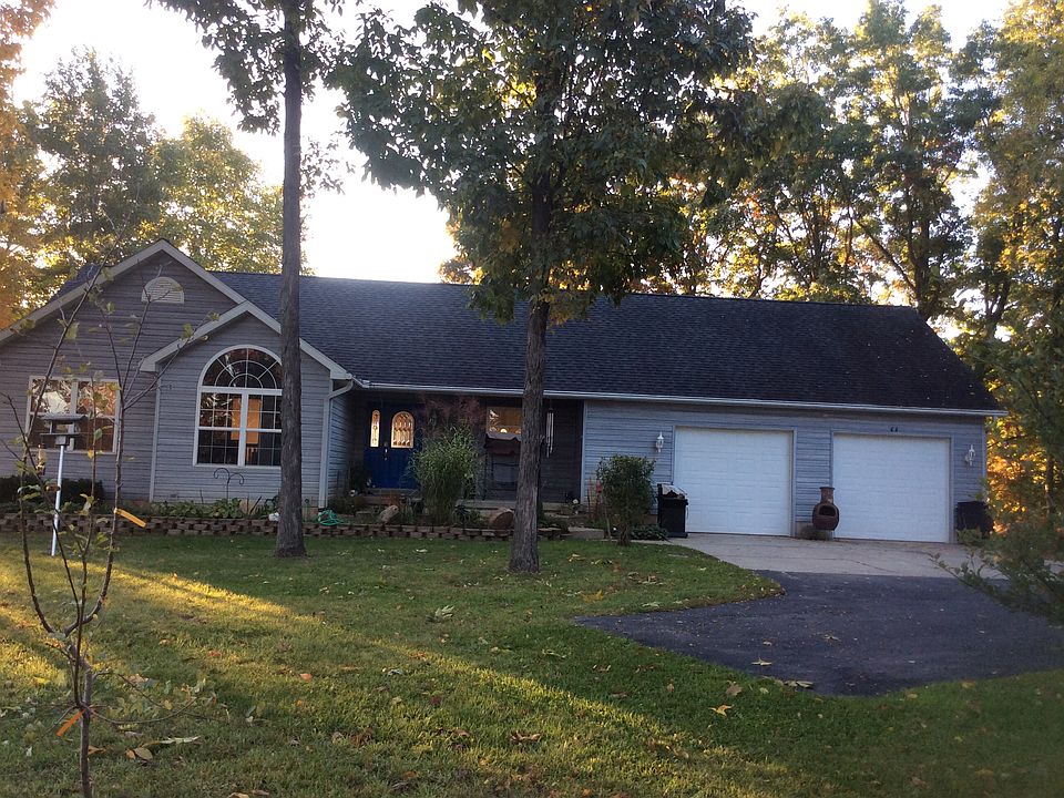 Peaceful and quiet setting! Living room, master bedroom and deck overlook the large pond behind the house, that provides a tranquil and scenic setting all year long with nature as well as deer, turkey, ducks and geese. 1400 square foot on main floor of this ranch home, with 1400 square foot in unfinished, walk-out basement. Open concept kitchen-living room area is great for entertaining. Vaulted ceiling. Third bedroom is currently used as office. Basement plumbed for bathroom (with septic pump). Just 2 miles east of Sheridan, paved road. New dishwasher, smooth-top electric range and microwave in 2014. New washer and dryer in 2013. All walls of main floor painted in 2014. New laminate flooring (laminate in kitchen and bathrooms). Two car attached garage is oversized and has plenty of room for lawn toys and more, and the concrete floor extends outside to the asphalt drive. Deck is 12 x 12 vinyl. Deluxe, free-standing deer blind with removable windows on all sides. High speed internet is available. Keyless entry.