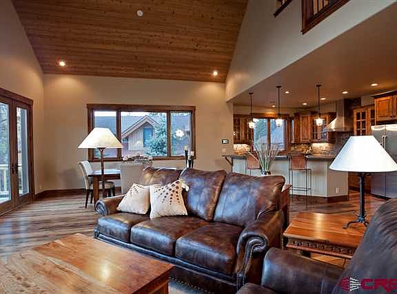 This custom free-standing cabin is located in a private, glacial carved rock setting with stunning views of Missionary Ridge and the Southern Animas Valley. Quality construction abounds throughout this fine town home built by Samborski Development. Scott Samborski created the flooring from reclaimed 100 year old timber beams. The great room and kitchen are open and provide a spacious room for all to gather. The spacious open kitchen is surrounded by custom distressed Alder Cabinets with seeded glass. This is the perfect setup for the entertainer! A large rocky fireplace in the great room extends to the vaulted ceiling as well as windows taking advantage of natural light throughout the home. . This rustic, elegant home features the master bedroom and a guest bedroom on the main level. Upstairs is a loft that would make a wonderful office with views or an additional reading/media area. The second guest bedroom is located on the upper level providing privacy and space for your guests. The tile work is a combination of stone, marble and granite. The Timber Village Cabins are equipped with multi-zoned efficiency, forced air heating and air conditioning that run on natural gas.