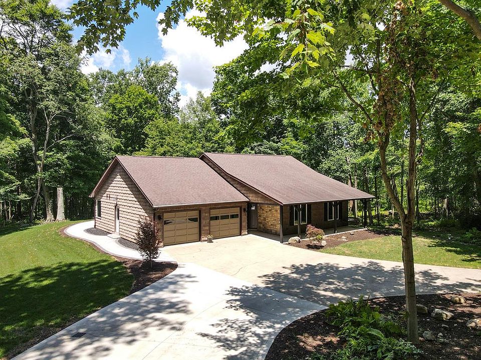 Beautifully remodeled custom ranch home tucked away on 6 secluded acres! Lex schools. 3100 sq ft total. Completely rebuilt with modern design & eclectic, custom decor throughout. Breathtaking industrial I-beams beautifully crafted into the open kitchen design. Custom built range exhaust to match. Quartz counters, high end appliances. Salvaged barn wood trim throughout. Custom exposed basement rails & steps. Master suite with dual vanities, heated shower lamp & walk-in closet. Wet bar with leathered granite in the basement. Theatre room, walk-in humidor, full bath & family room round out the walk-out lower level. Mail level laundry. Stamped concrete patio. Nature stone garage floor.