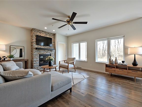 This stunning 3-bedroom luxury patio home is located in the new 55+ community of Frye Farm Estates in Unity Township and offers effortless, main-level living with high-end finishes throughout. Enjoy an open floor plan, interior sprinkler system, and luxury vinyl flooring that flows seamlessly from room to room. The gorgeous kitchen features an island with quartz countertops and opens to the spacious dining room with oversized windows capturing serene views. Relax in the living room with its stone fireplace and gas logs or step onto the private, covered patio overlooking the woods. The spacious primary bedroom includes a beautiful ensuite bath, and the FULL, WALKOUT, 1464 square foot lower level provides incredible space and potential for future finishing or hobby space. A 2-car garage and concrete drive complete this exceptional home.