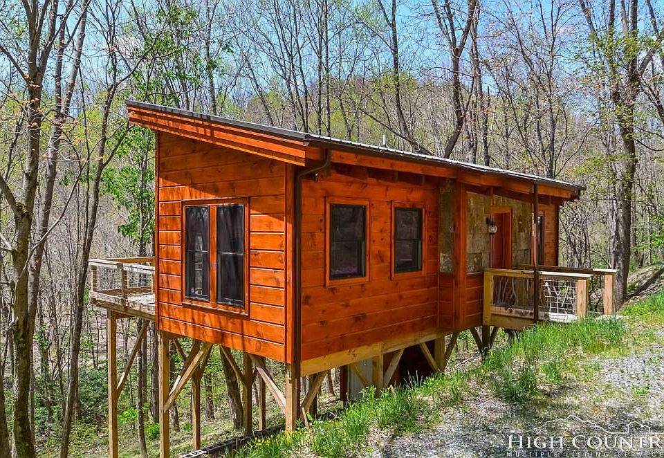 One of a kind, HGTV style, "Tiny House" in Todd. This cabin is just like the ones you see on HGTV. Perfect for weekend getaways or year-round living. The back deck provides spectacular seasonal long range views of the Blue Ridge Mountains. Very bright and spacious rooms. Vaulted ceilings and an open kitchen with a custom log breakfast bar and custom cabinets. Insulated bamboo hardwood flooring and knotty pine throughout and a beautiful electric stone fireplace in the great room. Over-sized walk-in shower in the bathroom. Spacious bedroom with lots of natural light. Additional storage and insulated basement. All on 1.14 (+/-) acres. Construction was completed in March 2016.