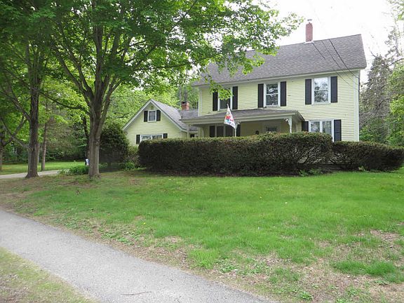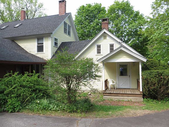 Great location right next to Kents Hill! This adorable farmhouse with farmers porch on a nicely landscaped lot with paved driveway has lots to offer! 4 bedrooms, 2 full baths, large kitchen with woodstove, family room with fireplace/woodstove, living room with woodstove incert, dining room and an office! Nice hardwood floors, lots of original detail and charm! The house has a huge attached 3 phase barn with one area used as a garage for vehicles, there's a loft and stall area. The property also has a woodshed, wood fired sauna building.