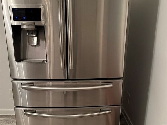 Step inside to discover a spacious great room flooded with natural light from a large sliding picture window—perfect for entertaining or relaxing. The newly renovated kitchen features stainless steel appliances, a built-in microwave, double-door refrigerator, and sleek cabinetry. All appliances, including washer and dryer, convey as-is.