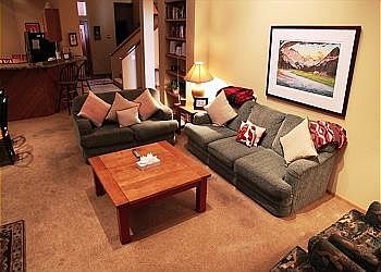 This 2490 square foot, 3 Bedroom / 3.5 Bathroom Duplex in Mammoth Lakes California sits right on the meadow and features a large, open floor plan with views to die for and sleeping for 10 to 12. Stay in one of Mammoth's most premier developments! Snowcreek is known for it's beautiful landscaping and views of Snowcreek Meadow and Mammoth Mountain. Within walking distance to the Snowcreek Athletic Club, Snowcreek Golf Course and winter shuttle, this unit offers a luxurious stay with great amenities, including a private two-car garage, laundry room, private gas grill and CD & DVD player. Snowcreek also offers spas, saunas, and a quiet neighborhood. Enjoy a hike in the meadow or a cross country ski trek while taking in nature's majesty. High-speed Wireless Internet Living Area: Queen sleeper sofa(TV), large kitchen with high counter and bar chairs, kitchen nook, dining area, river rock woodstove, washer/dryer, patio and half bath Master: four poster king bed, patio and full bath. Bedroom #2: King bed (TV), two twin beds, and full bath. Bedroom #3: Queen bed (TV), two twin beds, and full bath.