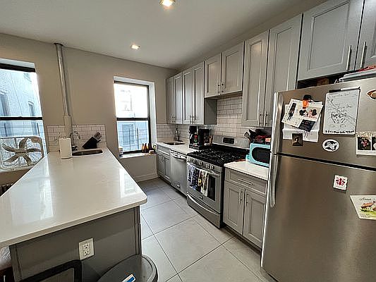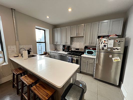 In unit laundry! MASSIVE LOFT LIKE brand new gut renovated, drop dead gorgeous, quiet, clean, very bright & sunny massive 4 bedroom apartment with a open kitchen includes top of the line stainless steel appliances including refrigerator, range & dishwasher, white granite counter tops, ceramic tile flooring with subway style tiled back splashes, 42" Custom made cabinets with self closing doors. All bedrooms have open views, large closets, windows and fit queen size beds & desks. Bathroom has 20" deep acrylic tubs, 24" solid wood vanity & High grade fixtures including porcelain tiles. 10 foot ceilings, blinding sun light, wide planked first quality oak flooring and recessed lighting throughout the apartment. Situated on the 2nd floor of a 4 story walk-up apartment building is located on a prime, tree lined quiet block in the heart of Crown Heights near all shopping, boutique stores, restaurants, schools, a short walk to the Brooklyn Botanical Garden, the Brooklyn Museum and Prospect Park and the # 3 & 4 train line placing you within 20 minutes of downtown Manhattan. The building has a repairman and superintendent, CCTV Video cameras with access key control and is lit up at night like Times Square. * Front of building is lit up at night like Times Square. * Pets Allowed * CCTV Video cameras & access control system for both the front & vestibule doors * Guarantors are accepted nationwide! * Rhino accepted * Heat & hot water included! 1580 President Street, Apt 7 is available directly from the owner for $3,795 NO FEE #brooklyn #nofee #apartments In person viewing by appointment. Please contact us for more info on this and other no fee apartment available directly from us the owner. follow us twitter/ownernofee all sq foot # are estimate