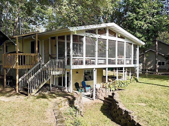 Picture sitting on your screened in porch, reading a book with a cup of coffee or playing cards with friends without mosquitos. Picture a beautiful rain with scents and sounds but without getting wet. Pack the cooler and spend the day on the water and still not be able to experience each channel on the lake system. Legend Lake is over 1300 acres, 47 miles of shoreline and depths of 74'. Completely renovated and sitting in between two of the 8 main lakes, this cottage has 162' of shoreline, a sandy beach, a pavered firepit area, a finished garage, a flat yard and sits in a quiet cul-de-sac. Sits almost smack dab in the middle of the chain of lakes. Open concept kitchen and living room boasting an 'up north' feel in every area of the home. Furnishings/boat available.