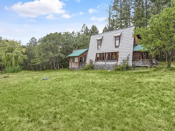 Situated in the sought after Tyler Creek area, this property provides incredible versatility. The main house is a two story 1,492 SF home with two bedrooms and one bathroom. The open living room has great natural light and lots of windows. There is extensive wood detailing throughout the home including hand made windows and stair railing. The kitchen is functional, has a roomy dining room and adjacent sitting area with woodstove. Detached is a 928 SF studio space with loft and full bathroom. It also features a 253 SF attached greenhouse. There are two barns, a corral, a fenced in garden area and plenty of room for animals. There is also a seasonal creek and pond on this property.