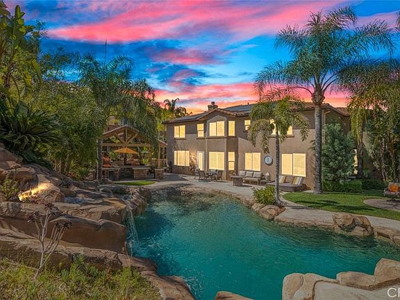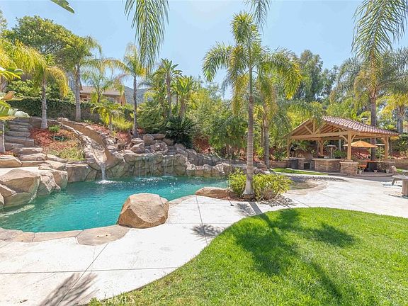 Welcome to this Executive Home located in the Highly Sought After Eagle Glen Community. This 4 bedroom 4 bath home with additional office and bonus room is situated on one of the most desirable streets. As you drive up you are greeted with lush landscaping. You will love the large custom double door front entry. Inside you will find high ceilings, fresh modern paint, wood look tile throughout the downstairs, new baseboards and shutters on most windows. There is a formal living room and separate dinning room. Also downstairs there is an office that could be a 5th bedroom and a full bathroom. Make your way to the remodeled kitchen with white soft close cabinets, quartz counter tops, custom tile backsplash. This dream kitchen also has a large center island with lots of storage. Full size sub zero wine fridge, built in Refrigerator, 5 burner cooktop, stainless steel dishwasher and trash compactor and a walk-in pantry. The kitchen over looks the spacious family room complete with a fireplace. There is a sound system that can be played in the house and outside, perfect for entertaining family and friends. Upstairs you will find a large primary bedroom with ensuite bathroom and a large walk-in closet, soaking tub and separate shower. Upstairs there is also a large bonus room, 3 additional bedrooms and 2 additional bathrooms. Make your way to the backyard to find an entertainers dream! There is a large rock pool with beach entrance, pebble tech bottom, rock slide, spa and waterfall. There is also a covered BBQ area with a large bar/eating area complete with a TV. This yard still offers more! A large side yard with double gate access for all your toys. There is also a beautiful fireplace with sitting area. This home includes paid off Solar Panels! The golf course and clubhouse are close by. This home is with in the Corona Norco Unified School District. It's close to shopping, parks, tennis courts and hiking trails. You won't want to miss this great opportunity!
