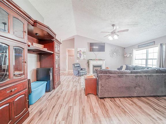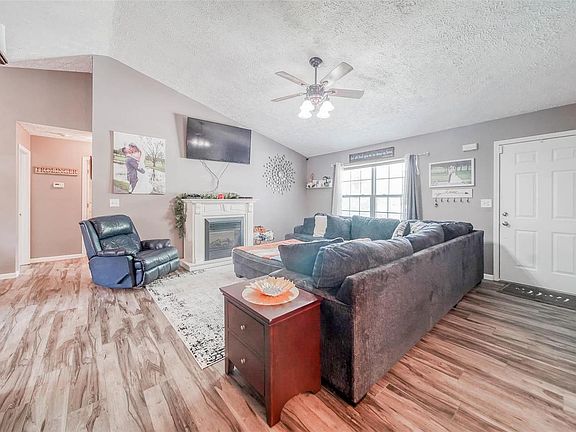 Welcome Home! Discover this charming 3-bedroom, 2-bathroom home situated on a beautifully landscaped .45-acre lot m/l, dotted with mature trees that provide both beauty & shade. Welcoming you from the inviting front porch is a large living room. Your eye is drawn to the vaulted ceilings throughout the home, adding a spacious feel to the semi-open-concept floor plan. The elegant dining room provides seamless access to an impressive deck, perfect for outdoor dining & entertaining. The beautiful kitchen boasts stainless steel appliances, plenty of cabinetry & countertop space, & a large pantry. Your primary bedroom offers a walk-in closet & ensuite bathroom. 2 sizable bedrooms, a guest bath, a large laundry room, & 2 car attached garage complete the layout. The privacy-fenced backyard ensures a safe & secluded space for family activities & is ready for your summer fun with an above-ground pool! This delightful home combines comfort and style! Don't miss the opportunity to make it yours!