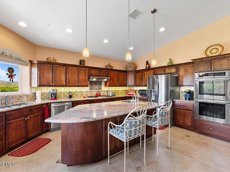 A Slice of Paradise, Step into a world of comfort and romance in this beautiful 4-bedroom, 2-bath home on one of the largest, most scenic view lots in Grey Fox Ridge. From the moment you walk in you'll feel the warmth and charm of this thoughtfully designed home. Rich engineered wood flooring flows throughout, complemented by elegant cabinetry and upgraded granite countertops. The kitchen is equipped with energy-efficient appliances, and the spacious laundry room includes ample storage and a utility sink for convenience. Outside, let your cares melt away in your private heated saltwater pool and hot tub — an idyllic setting for sunrise coffee or sunset wine. Entertain under the covered patio as you soak in sweeping views of the surrounding mountains and open skies. With an oversized 24' deep garage, plus RV parking with full hookups, this home is designed for both comfort and practicality. A 22-panel owned solar system ensures energy efficiency and savings. This peaceful sanctuary offers the perfect blend of luxury, privacy, and natural beauty a place where every day feels like a romantic escape. Come fall in love
