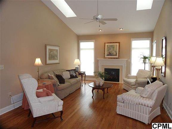 Truly a fine home offering one level care free living w/nearly $35,000 in ugrades. 3 bedrooms & 2 Full Baths; Open flr plan w/vaulted ceiling & hardwd flrs thruout the living area. Maple kitchen w/zodiac tops, enlarged island, & ss appliances. Formal dining area w/access to covered patio. Great Rm filled w/natural light from skylights & floor to ceiling windows flanking a gas fireplace. Come see what living is all about!