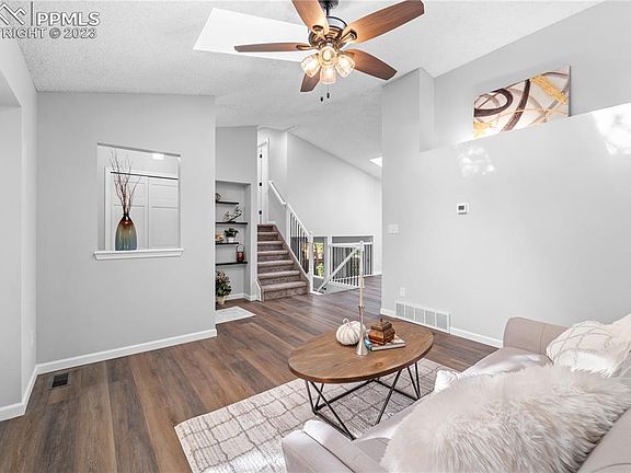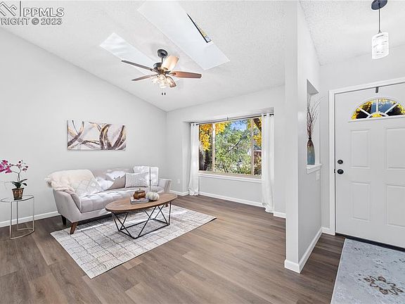 This STUNNING fully remodeled 4 bedroom 3 bath home offers you the best of everything in one of the most sought after neighborhoods! Custom leathered granite counters compliment the impressive NEW cabinets and subway tile backsplash. ALL NEW stainless steel appliances stay with the home. Beautiful NEW laminate hardwood floors throughout the main level along with NEW paint, NEW lighting fixtures and NEW iron railing give the home a sophisticated elegance. Soaring ceilings and skylights create a light, spacious atmosphere inviting the outdoors in with views from every room! Family room features NEW carpet and a gas fireplace to keep you warm on chilly nights. Walk out to the backyard patio, perfect for BBQ's and soaking up the beautiful mature trees and mountain views. Large Master bedroom is generously sized with two closets and a private deck, perfect for enjoying morning coffee. The gorgeous remodeled ensuite bathroom features an oversized walk in shower, granite counters, new tile, posh new plumbing and lighting fixtures. The other three bedrooms are nicely sized with lovely views, new carpet and paint. The other two bathrooms have been totally updated with granite counters, new tile and flooring, and stylish new plumbing and lighting fixtures. NEW A/C will keep you cool on those hot summer days. NEW class 4 roof will save you money on insurance! OVERSIZED 2 car garage will fit large trucks or SUV and features a built in workshop. Situated in a PRIME LOCATION walking distance to Quail Lake, parks, shopping, restaurants & entertainment. Close to Cheyenne Mountain, Military Bases, Country Club, Golfing, Hiking, Schools and a Dog Park.