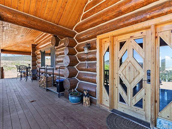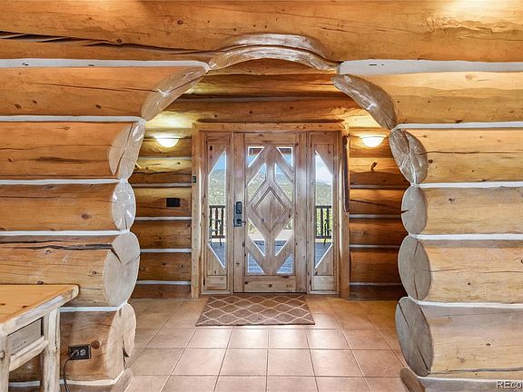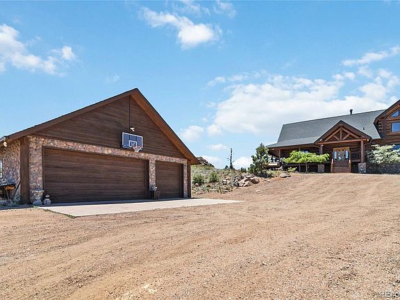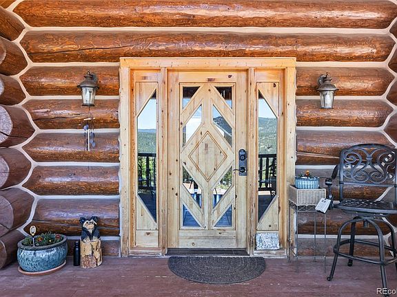This amazing log home sits on a private hilltop with just under 12 acres of incredible mountain views. Only 45 minutes from Denver, this 4 bedroom 4 bathroom home features a walkout basement with 2nd primary suite, game room, wet bar, pool table, large deck, vaulted ceilings and amazing views from every room. The oversized 6 car heated garage has outside space for RV parking. This unique custom home has everything you may want. A brand new, high efficiency Boiler with water filtration unit was just installed ($35K). The heated pool has a powered retractable cover (also prewired for a hot tub). The entire exterior was recently refinished. The west facing deck is new and 6 new windows were installed. Includes a backup generator. Some of the custom log furniture is available for purchase with the sale. Please inquire with the listing agent.