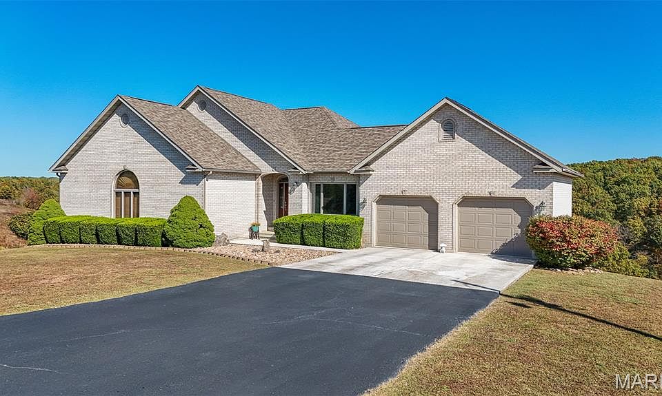 Just 10 miles south of Rolla in the Rolla Public School District, this beautiful, energy-efficient 3-bedroom, 3.5-bathroom home sits on a picturesque +/- 3-acre parcel in the desirable Fraley Ranch Estates. Boasting approximately 3,300 sq. ft. of living space, this home was built to last with granite countertops, custom maple cabinetry, and gorgeous wood flooring. Enjoy peace of mind with a whole-home Generac generator, and relax or entertain in the spacious lower-level family/recreation room, complete with a wet bar and beautiful native stone propane fireplace. Step out onto the back porch to take in the panoramic, serene lake views and the abundance of wildlife that frequent the property. The all-brick exterior impresses with a custom-stamped entryway, paved driveway leading up to the attached double-car garage, and an electronic gate for privacy and security. This exceptional home combines comfort, craftsmanship, modern amenities, and country charm. There is so much more to see for yourself - schedule your private tour today!