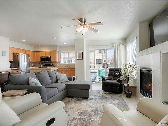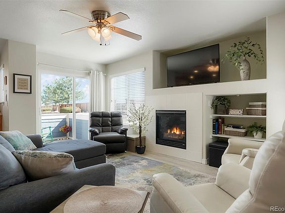 Stunning Townhome with Modern Features! This beautifully designed townhome offers 2 spacious bedrooms, 3 bathrooms, and a bonus upper-level space, ideal for extra living or work space. Natural light pours in throughout, enhancing the open-concept layout, making it a perfect home for both relaxation and entertaining. On the main level, you’ll find a large great room with a cozy gas fireplace and built-in shelving, alongside a formal dining room. The kitchen is a chef’s dream with abundant cabinetry, a large island, tile counters, a stylish tile backsplash, stainless steel appliances, a spacious pantry, and plenty of windows to keep the space bright and airy. A convenient half-bath for guests completes this level. Upstairs, the spacious bedrooms include a luxurious primary suite with a private ensuite bathroom, tub/shower combo and dual sinks, and the second bedroom also has its own ensuite full bathroom, offering comfort and privacy. Additional highlights include a water softener, a water heater that was recently replaced in 2022, and a private patio, ideal for evening dinners or morning coffee. Located near restaurants, shopping, and with easy access to I-76, this home is in a prime location!