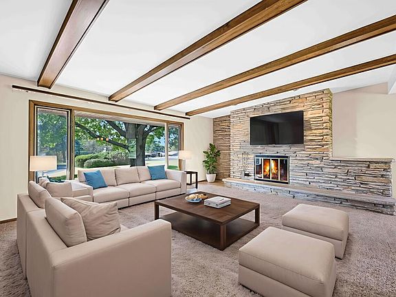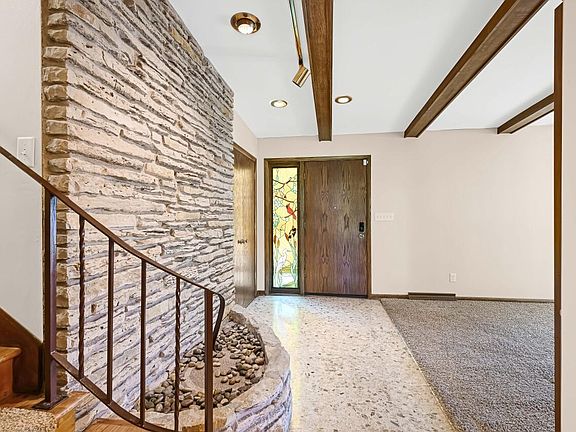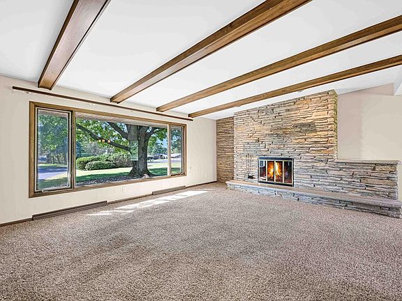 WOW! This classic Mid Century Modern design with updates and size is sure to impress. The welcoming foyer leads to a generous LivRm/ DinRm ''L'' w/ vaulted ceiling, picture windows splashing natural light and statement Lannon stone FP. Flow to the spacious KIT/Din with new flooring and SS Appls. Updated Prim BR ensuite offers a walkout deck and double closets. Three add'l BR's and second full bath provides space for family and guests. (Per seller- all BRs w/ HW floors.) Be ready for cozy nights or game day entertaining in the FamilyRm w/ FP and walkout to a covered patio. Finished LL for rec, two half baths, a cool office w/ built-ins and convenient LaundryRm completes this functional and stylish home. Great 3/4 acre yard in Elmbrook SD near Wirth Park and trails adds to the appeal!