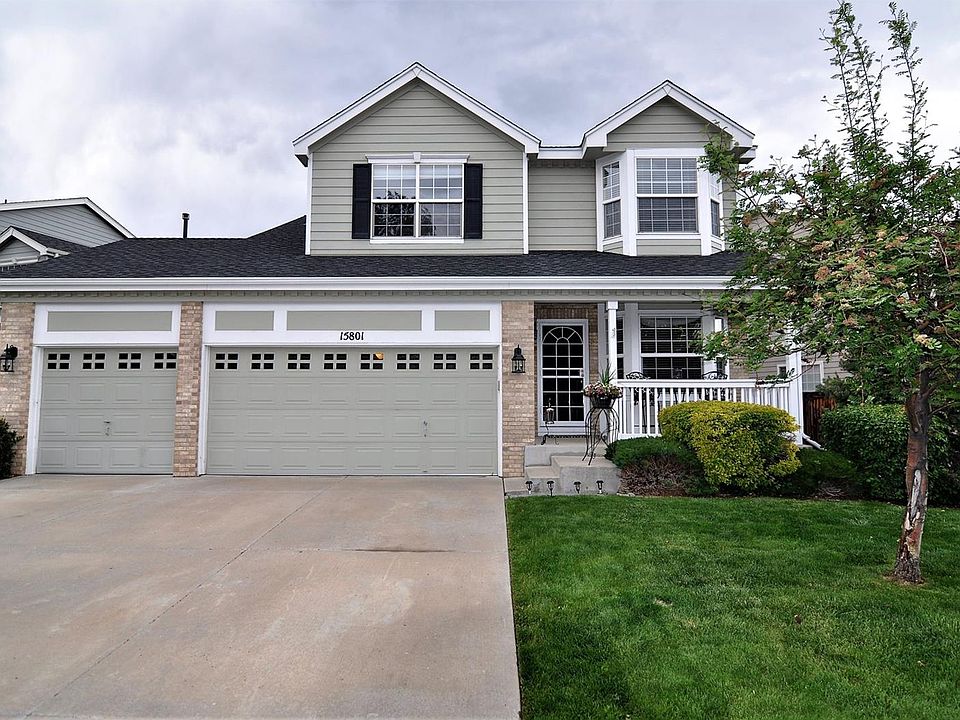 Gorgeous home in the highly desired Stonegate Community. The inviting front porch and 3-car garage add to the tremendous curb appeal. Conveniently located close to E-470 & I-25. Large community parks with tennis courts. Walking distance to elementary and high school. New roof, water heater and AC. Inside the home you are greeted by gleaming wood floors and an abundance of natural light creating a warm, welcoming atmosphere. Eat-in kitchen finished with matching appliances, an island offering additional storage and counter space, granite counters, and a tile back-splash. 3 bedrooms on the upper level including the king-sized master suite finished with a private 5-piece bath. Additional living and entertaining space offered in the masterfully finished basement. Backyard oasis with a large deck leading down to a patio area. Backyard has been fully fenced and comes with a dog-run area and a storage shed. This home has been professionally cleaned and maintained since 2004 purchase.