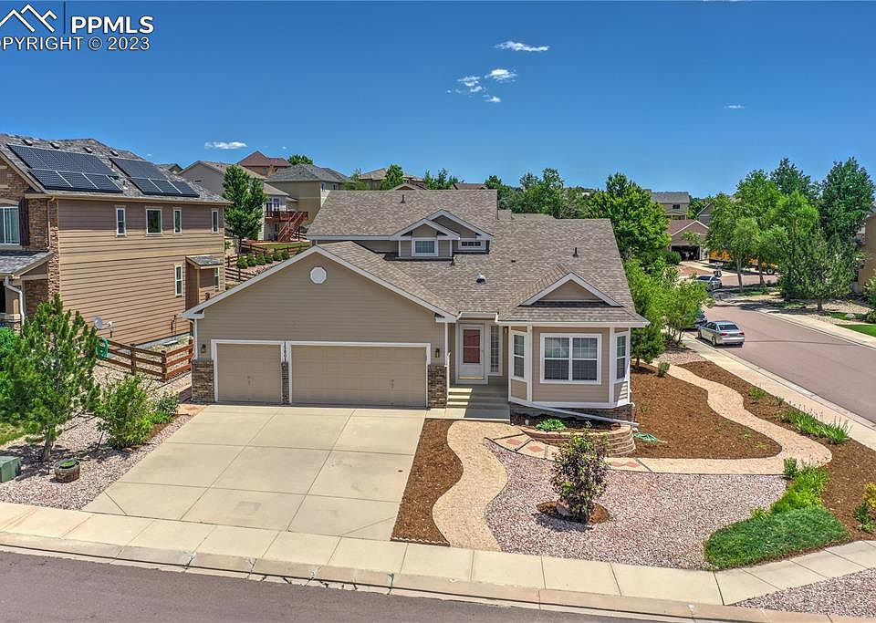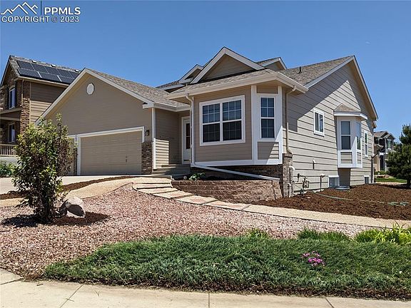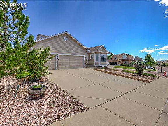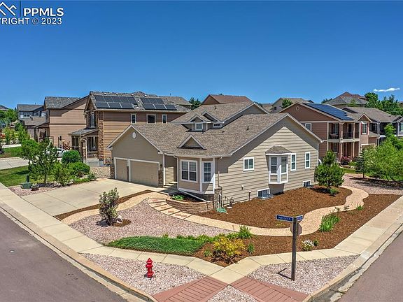 Great location on a corner lot in Jackson Creek Subdivision. Close to I-25, Air Force Academy, shopping and restaurants. This 4 bed/3 bath has just been updated with new paint, flooring, and landscaping. It features an open floor plan with plenty of windows and sunlight. The spacious kitchen features stainless steel appliances, pantry, and newly refinished hardwood floors. The breakfast nook looks out on the front range foothills. Formal dining area. Large unfinished basement provides a great area for a work out room, storage, or future expansion. Extra large block patio with pergola covering. This home also includes a large rhubarb plant!!