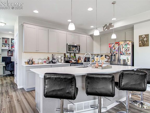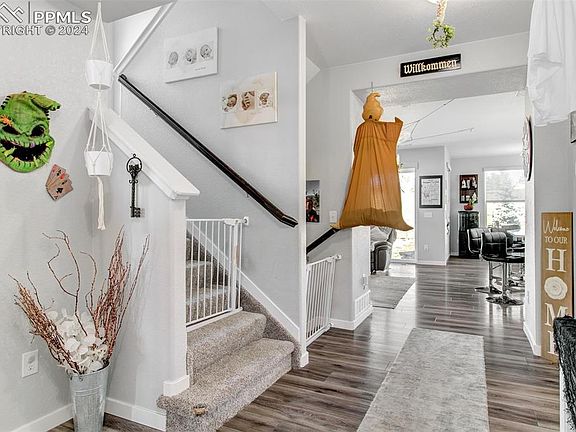 Be greeted into this beautiful Monument home with an instant upgraded feel! The main floor office sits at the front of the home with french doors perfect for working from home. An open concept living, dining, and kitchen round out a beautiful living space on the main floor. The kitchen features stainless steel appliances, pendant lighting, and an enormous island! Behind the kitchen sits an active homeowner's dream of a mudroom. A built-in desk with additional cabinets, a walk-in closet, and a built-in bench and compartments give you all the storage space you hoped for and more! Upstairs, find four bedrooms including a spacious primary suite with a private balcony that gets breath-taking mountain views. The upstairs loft serves as another living space. The hall bath features a split design perfect for getting ready. The laundry room opens to the hall and the primary closet making this chore a piece of cake! Downstairs, there is another huge bonus room, bedroom, and full bath. This basement has four windows, extra lights, and an upgraded extra foot of ceiling height to ensure it feels like a real extension of the living space. The enormous bonus room really has three spaces so it is ready to be used however you want! A new ac unit has been added. New security system and water filtration system have been added as well. However, the truly remarkable feature of this home is the outdoor living it provides. The home backs to an open space and sits just 2 miles from the trails of the Monument Preserve and Mt. Herman. The neighborhood has a park with a playground, trails, gazebo, amphitheater, and a recreational lake for fishing and kayaking. This amazing opportunity won't last!