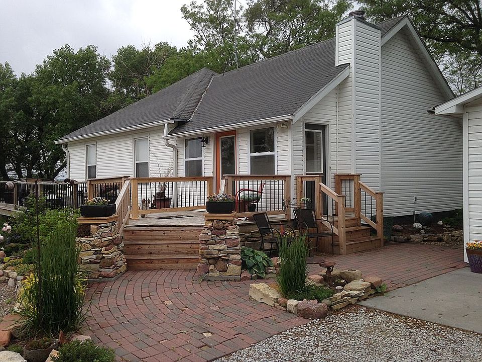 Updated to be a very comfortable, modern country home on 5 peaceful acres, lots of windows and scenic views. Nicely finished walk-out basement increases total living space to 1,870 square feet. Central gas heat and AC with a wood burning stove in the basement. Nature trail and trees create great habitat for birds, butterflies and other wildlife. Kitchen/dining area with pantry. Many large rooms--see photo captions for dimensions.