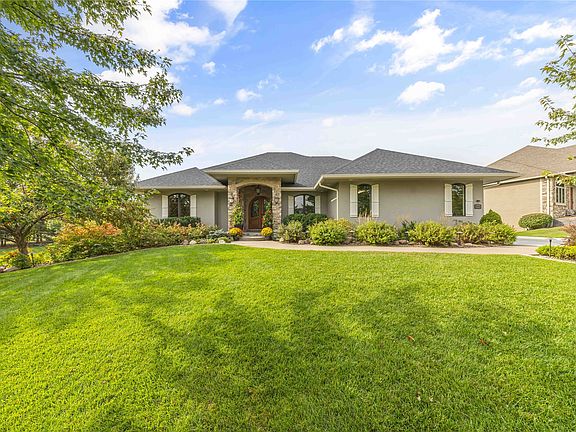 Welcome to this stunning ranch home nestled on a .80-acre lot, offering privacy, elegance, and functionality. Inside find soaring 12 ft ceilings, walnut floors, and spacious open living areas designed for everyday comfort and upscale entertaining. Expansive windows frame lush, wooded views and fill the 4,200 sq ft of finished space with natural light. Boasting 4 bedrooms, 4 baths and many gathering areas, this home is loaded with features including a Sonos audio system, stone fireplaces, a gourmet kitchen and a second full kitchen in the lower level. The primary suite is a true retreat with a sitting area, spa-inspired bath with steam shower, deck access and an oversized walk-in closet. A home office with custom woodwork, formal dining room with coffered ceilings, and walk-out lower-level spaces provide room for both work and play. Outdoors, you will find a covered deck and stone patio fire pit on this well-landscaped, pool-friendly backyard. An oversized, 3-car, heated garage with storage ensures functionality matches the home's style. Additional features include irrigation, central vac, security system, and a 50-year new roof. All information obtained from Seller and public records.