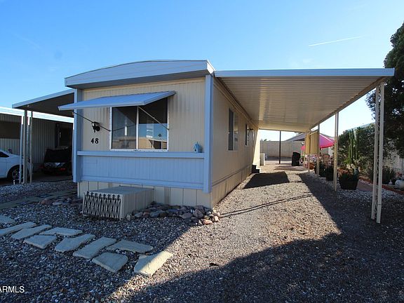 Cute and Cozy single wide manufactured home in 55 plus park. Enjoy retirement in the pleasant community of San Tan Mobile Village with some of the lowest land lease fees in Chandler. Home Features new water heater, new kitchen sink, freshly painted kitchen cabinets. Bathroom has recently been updates with new flooring, new vanity and mirror and walk-in shower. Roof was recoated less than a year ago. Private shed creates space for tons of tools or storage. Lock and Leave: Snowbirds welcome. Wonderful opportunity to own a little ray of Arizona sunshine.