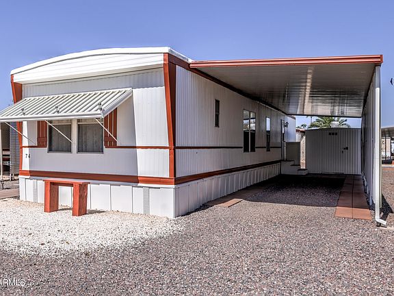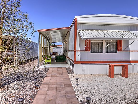 Come take a look!...MOVE IN READY 14x64, 2-bdrm, 2 bath mobile home in the 55+ community of San Tan Mobile Village in Chandler AZ. This fully FURNISHED home includes full size washer/dryer and ceiling fans throughout. New A/C heat pump system and new water heater in 2024. Close proximity to the 202 loop, grocery stores, plus numerous shopping and restaurant venues. LOWEST LOT RENT IN THE AREA!