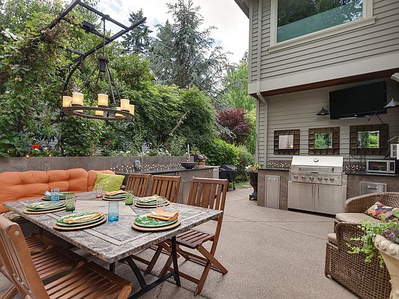 Timeless traditional w/hardwoods, crown molding, wainscoting. Large chef kitchen w/6 burner Wolfe cooktop, 2 dishwasher, wine fridge,granite, custom cabinets, flows into great room w/fireplace, built-ins & French doors that open to magazine cover outdoor kit. & living room(fireplace, dishwasher, granite, BBQ, TV, speakers, Den/Dining on main. 2nd level features spacious master suite, lrg.bonus,3 bedrooms. E-Z access to I-5