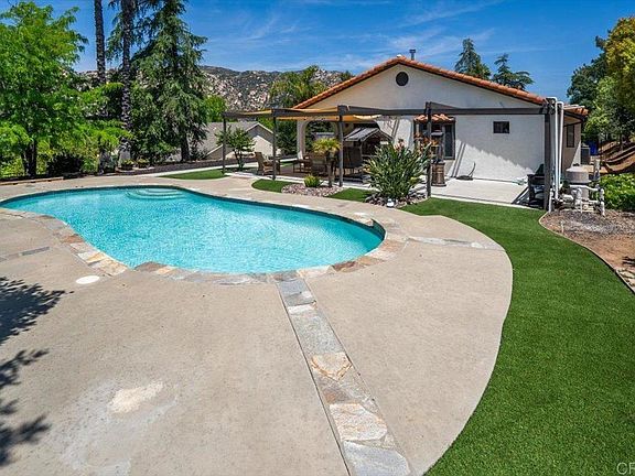 Welcome to your dream retreat in the picturesque San Diego Country Estates! This stunning Spanish-style home boasts breathtaking mountain vistas and sits on an expansive 18,000+ sq ft lot. With 3 bedrooms and 2 bathrooms spread across 2,426 sq ft, this single-story gem offers the perfect blend of comfort and luxury. Step inside to discover vaulted ceilings, and elegant arched windows that fill the formal living room, formal dining room, and family room with natural light. The remodeled kitchen is a chef's delight, featuring quartz counters, stainless steel appliances, and maple cabinets by KraftMaid. Relax and entertain in style in your private backyard oasis, complete with a sparkling pool, covered patio area, and panoramic mountain and valley views. Recent upgrades abound, including new turf, an expanded concrete driveway, a patio, newer roof, and a new HVAC system with new ducting in the attic. Additional features include a primary bedroom retreat with a walk-in closet, a paid solar panel system, new LVP flooring throughout, and a wireless sprinkler control system. Every detail has been carefully curated to offer the ultimate in modern living. Dont miss this one! Discover the hidden gem of San Diego County! Nestled amidst the picturesque rolling hills of San Diego Country Estates (SDCE) in Ramona, known as 'The Valley of the Sun,' this area offers a lifestyle of tranquility and natural beauty. Embrace breathtaking mountain vistas that envelop the community. SDCE boasts an array of outdoor amenities tailored to enthusiasts, including a prestigious 18-hole golf course, over 55 miles of scenic horse and walking trails, and pristine tennis and pickleball courts. Dive into leisure at two sparkling community pools, one of which is Olympic-size, perfect for relaxation and recreation. For our four-legged friends, indulge in the expansive greenery of two dedicated dog parks. Plus, with two equestrian centers on-site, this community is a haven for horse lovers. Convenience meets comfort with nearby resources such as gourmet dining options, the esteemed San Vicente Resort Inn, and a fitness center. Pamper yourself at the full-service wellness spa, providing rejuvenation and relaxation just steps from your doorstep. Families will appreciate the educational excellence offered by two award-winning elementary schools within the community. Enjoy the perfect blend of serenity and sophistication in this unparalleled enclave within San Diego County. Welcome home to San Diego Country Estates!