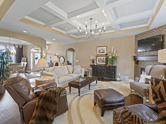If you’re looking for a luxury and custom-built home without the price of new construction in today’s market, then look no further. This one-owner, built by J&K Construction is tucked away in the back, on a private cul-de-sac lot in the well-known Twin Eagles development. Charm and character abound with custom crown molding, 9 ft ceilings, coffered ceiling in main living area, arched passageways, oversized trim package, transom windows, granite countertops in kitchen and bathrooms, solid wood doors, slow close cabinet doors & drawers, walk-in closets in all the bedrooms, custom stamped concrete along sides of driveway, on the walkway to the front door, the backyard patio and the oversized screened in porch. The master suite boasts with luxury and comfort featuring a custom trey ceiling, walk in closet, custom mirrors, heated floors, and a walk-in tile shower. This home has been professionally decorated inside as well as professionally landscaped with endless amounts of upgrades throughout. A few bonus features include a whole house speaker system, irrigation system for the lawn, and a floor to ceiling tile fireplace. As summer rolls around your family is sure to enjoy the Neighborhood Amenities including the oversized swimming pool, baby pool, tennis court, and pavilion area for an old-fashioned family picnic.