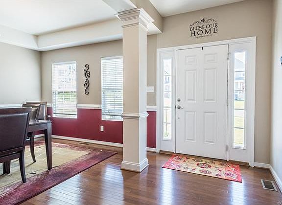JUST REDUCED! BUY IN TIME TO ENJOY THE BRAND NEW COMMUNITY POOL! Welcome to this Southern Charmer in Harpers Mill! The 2 story front porch welcomes you to this 3452 SF home. This Bronte model by Lifestyle Builders is better than new! Inviting hardwood entry foyer, open concept Dining Room w/Hardwood Floors, Deep Tray Ceiling, mouldings and columns, Private Office/Study w/French Doors, the Kitchen is a dream w/Staggered cabinets, granite counters, stainless appliances, hardwoods and the size of the island will amaze you! A roomy Family Room w/gas fireplace & prewired surround sound awaits your latest technology. MAIN FLOOR BEDROOM & FULL BATH! The luxurious Master Suite is complete with 2 walk-in closets and a Bathroom that is bigger than most bedrooms, complete w/double vanity, oversized soaking tub & Sep Shower. Large Bonus Room offers many possibilities from playroom to MANCAVE! Laundry Room w/exit to 2nd level porch, 3 additional well proportioned bedrooms and a full bath complete the 2nd level. NEW Carpet throughout, 2 car garage, irrigation, patio, backs to wooded area. Harpers Mill is scheduled to open it's pool and clubhouse this summer - buyer agents confirm the HOA fee