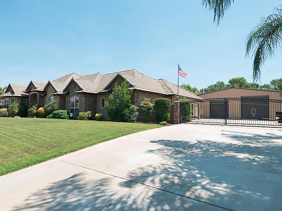 STUNNING Silver Oak Home with Pool and SHOP! This fabulous 3 bed + Office + Library (no closet) 3 bath home is ideal for entertaining w/lrg open-concept living and immaculate front & rear yard landscape, block wall, 50x40 shop, pool/spa & loggia! Architectural appointments include ledgestone accents on front elevation, charming fountain, double entry doors & double iron gates w/remote that opens onto a 3 car garage and spacious concrete side yard for parking. Generous interior amenities include; 10'ceilings, generous cabinets throughout, shutters throughout as well as designer lighting and oil-rubbed fixtures & Victorian hardware. This kitchen is a dream with recessed lighting, stainless appliances and solid-slab granite countertops w/full tiled backsplash & pantry. You'll be impressed with a corner gas-fireplace, ceiling fans and a gracious master retreat includes a large walk-in wardrobe and ensuite with dual vanities, make-up vanity & split garden tub/shower