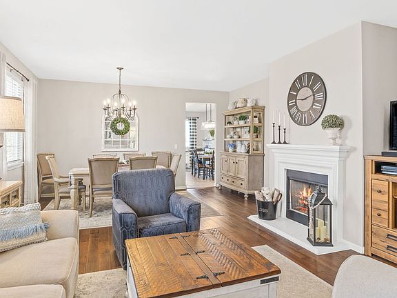 Stunning 3-bedroom, 2-bath ranch duplex with a finished basement and maintenance-free living! This move-in ready home has been beautifully updated throughout and offers lawn care and snow removal included for stress-free living. The kitchen features maple cabinets, quartz countertops, recessed lighting, newer appliances, and a generous eating area. A sliding glass door leads to a huge concrete patio, perfect for entertaining or simply relaxing while watching the beautiful sunsets. The yard is beautifully landscaped, adding to the home's charm. The primary suite boasts a vaulted ceiling, walk-in closet, and an updated bath with a separate shower and soaking tub. The laundry room has been remodeled with added cabinetry and a sink for extra convenience. The living room features a cozy fireplace, while the large dining room offers space for a hutch. The finished basement includes two large rec areas, a spacious 3rd bedroom with a huge walk-in closet, and plenty of storage. With nothing to do but move in and start enjoying, this home is a must-see!