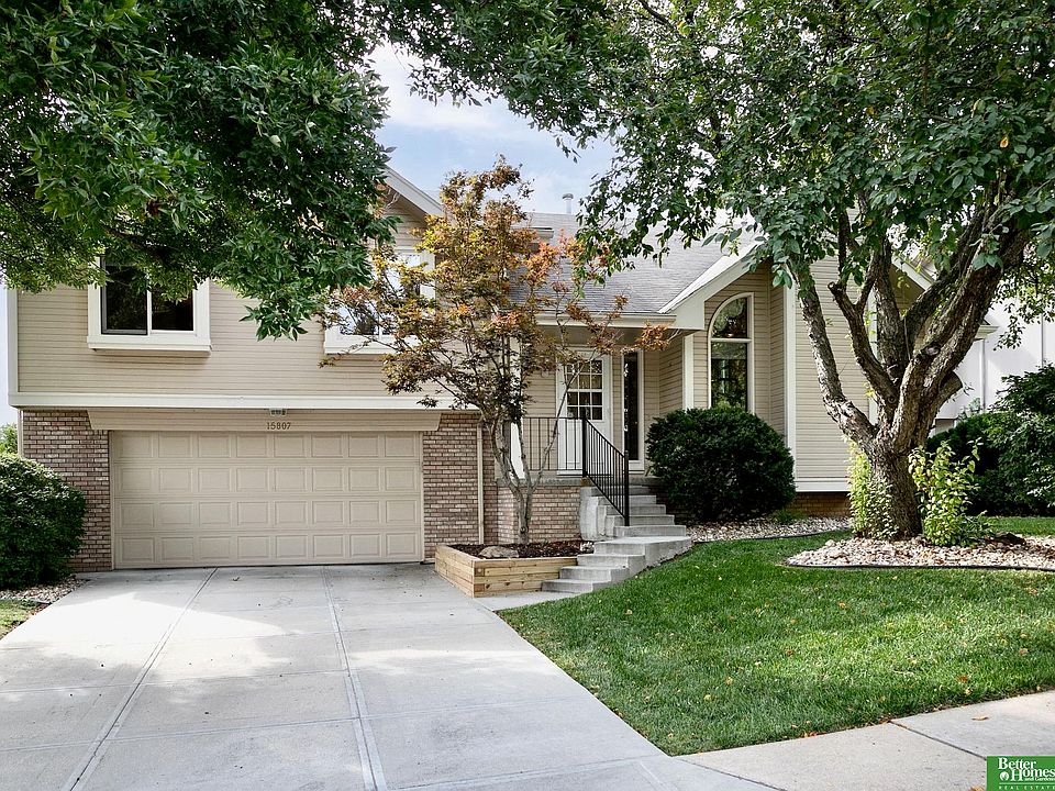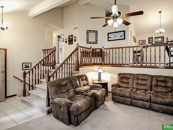 PRE-INSPECTED multi-level home in the desirable Millard Schools, featuring 3 spacious bedrooms, 3 baths, & oversized 2-car garage. Step into the inviting entryway with tiled floors, leading to a bright living room with vaulted ceilings & cozy gas fireplace with brick surround. The upper level offers a well-appointed kitchen with ample cabinetry, counter space, & convenient pantry. The eat-in area opens to a deck overlooking the backyard enclosed with a maintenance-free fence. A formal dining room provides perfect space for larger gatherings. Primary suite boasts a walk-in closet & a private 3/4 bath. Two additional bedrooms share a full bath with tiled floor & shower. The lower-level family room, with newer LVP flooring, is perfect for relaxing, with a nearby half bath & laundry room. A bonus lower level offers incredible storage or space for hobbies.