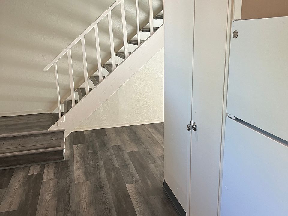 Bayfair area. Freshly painted townhome with NEW GE appliances, and laminated flooring, and new windows and blinds. Close to Hillside Elementary School, 580 freeway, and AC Transit, and close to Bayfair Shopping Mall. A one-year lease for the first year, then a month-to-month tenancy is available. Owners pay for water, garbage, and sewer. Tenants pay for PGE and WiFi/cable. One car space is assigned to tenants. The laundry room area is between the two buildings. Smoking is not allowable in or outside premises because of County Law. Tenant to maintain patio.