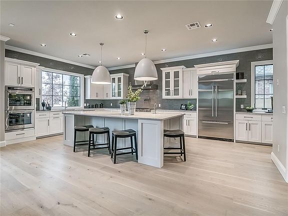 Stunning new home with the finest craftsmanship and appointments throughout. The floorpan has a very open concept with soaring ceilings and tons of windows to let the sunshine in! Beautiful site built cabinetry, huge center island, wine room, dual thermostat wine refrigerator, high end commercial grade appliance package and quartz countertops. The master suite is spacious with cathedral ceiling and separate his and her baths with heated flooring and oversized closets. Her side has a large soaking tub, make up vanity, and elegant fixtures. His has more masculine details and a huge walk in shower that join the two spaces. The secondary guest room is nice size with a fabulous bath and walk in closet. The flex room is ideal for an office or guest room. The outdoor living with fireplace is just the right size for entertaining and flows nicely from the living and kitchen area. Located in the maintenance free area of Fairview Farm The Abbey. (safe room in master closet)