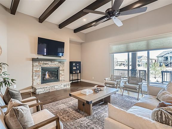 - Description: Hardwood Floors, Wood Beams, Ceiling Fan, Gas Fireplace With Stone Surround, Sliding Door Access To Covered Patio With Great Views