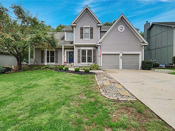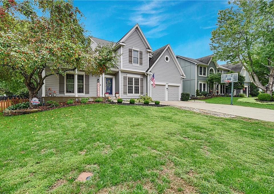 New Listing in Desirable Hampton Place! Highly Rated Blue Valley School District. Low traffic Cul-de-sac. Charming Covered Front Porch. This one truly has it all! BRAND NEW furnace & Water Heater! Newly Renovated Kitchen with stylish finishes, stunning lighting and convenient Kitchen Island. THREE Living Spaces! Large Formal Living Room with Hardwood Floors & Stately Fireplace, Cozy Hearth Room off Kitchen with Built-ins & 2nd Fireplace, and a Lower Level Media Room with FULL Size Wet Bar for Entertaining. All NEW Hardwood Floors on the main level. Fresh Paint. Practical Bedroom-Level Laundry Room. Updated Bathrooms. Spacious Primary Bedroom. Dual Vanity and Walk-in Closet. Big Fenced Backyard with 2 Decks and a Patio. Walk to neighborhood Pool. Less than a mile to Elementary School. 1 Mile to Blue Valley High School. 3 Miles to Prairie Fire's Shops, Restaurants, Museum, Entertainment and more!