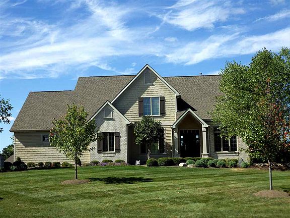 Come see Twin Eagles Estates, on the north side of Fort Wayne. (Click on UNBRANDED VIRTUAL TOUR LINK BELOW TO VIEW NARRATED AERIAL VIDEO OF ESTATES), where all lots contain a minimum of 1.6 acres. This five bedroom (w/master on main) family home with 4,604 finished sq ft plus another 1,064 sq ft of unfinished area in basement, totaling a 5668 sq ft home on a 1.8 fully irrigated lot. Hardwood flooring through out much of main floor Kitchen, hearth room, family eating area, entrance way, with carpet in family and master bedroom. In the master suite area you'll find two (his and hers) large walk in closets. You'll love the ceramic tiled walk in shower complete with built in sitting bench. This home built by prestige custom home builder Chris Stauffer. Kitchen has Corrine counter tops, granite sink w/touch faucet and custom Grabill cabinets. Enjoy generous painted crown molding throughout this home. Family eating area open to hearth room leads to a large screened porch then onto a stamped patio for summer entertainment. Each of the 3 bedrooms upstairs has own walk-in closets. An eight windowed daylight basement provides a gorgeous wet bar with space for a full sized refrigerator and plenty of entertainment, as well as fifth bedroom w/ full bath. Dual zone high efficient furnace & A/C; surround sound speakers throughout; lg floored attic; plus huge storage are in basement, 30 yr roof; AirBoss dehumidifier system; ADT security system; RO drinking water; all above ground bedrooms and family room have deluxe ceiling fans; all window wells and downspouts drain to lot's perimeter. 5 Star builder's level includes engineered floor joices and extra insulation in all 6 studded walls for super interior quietness on windy days as well thermal/utility efficiency. Entire yard front and back have zoned control irrigation sprinkling system. Your neighborhood association provides community pool and tennis courts, but plenty of space on your 1.8 acre lot for your personal pool, tennis, etc. facilities if you wish.