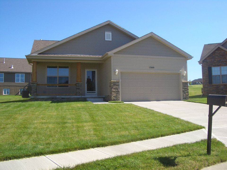 Beautiful ranch home located in Bennington in the desirable Pine Creek subdivision! Quick access to shopping, dining, schools and parks! This home has a wide-open floor plan with lots of natural light. The kitchen features beautiful hardwood floors throughout, 9' + ceilings, pantry, and a large granite island. Primary bedroom has a 3/4 bath, and a large walk-in closet. Fully finished basement with a bedroom & a 3/4 bathroom. The large family room is the perfect space to entertain! Come enjoy your weekends sitting outside on the covered porch! Schedule your showing today! AMA. Seller is providing a $3k credit towards new carpet/floorings.