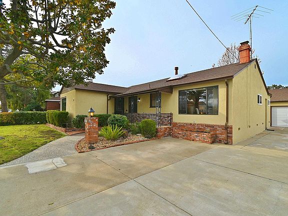 Home For The Holidays! This single level home is located in the Ball district & boasts 3 bedrooms, 2 baths, with 1,548 sq ft of living space & has a side access to an oversized, 437 sq ft detached garage w/workshop area & plumbing for a bathroom-possible ADU. This home boasts gleaming hardwood flooring & all new interior paint, formal living room w/fireplace & picture window, dining room, eat-in kitchen w/pantry, stainless appliances, free standing gas stove, hood & dishwasher, all opening to the family room w/brick fireplace w/raised hearth & parquet wood flooring. Primary bedroom has bathroom w/shower, dual sinks & window. 2 additional bedrooms and hall bathroom with shower over tub & window. Additional features include laundry room, side door to gated backyard w/lawn area, covered patio & storage shed. Great location, close to transportation, schools, transportation, hospital & so much more. Don't miss this one! Open Sat & Sun 17 & 18th 2-4