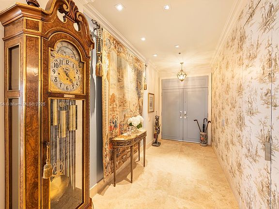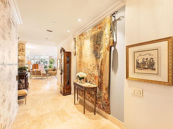 Discover an unparalleled lifestyle in this rarely available lower penthouse at iconic Villa Regina. Experience breathtaking bay views from this fully renovated residence featuring 12-ft ceilings, marble floors, impact glass & custom millwork. Gourmet kitchen w/ premium cabinetry, wine cooler & built-in breakfast nook. Luxurious primary suite offers a spa-like bath, walk-in closet & private terrace w/ stunning views. Spacious second bedroom & versatile walk-through den/library add functionality. Full-size laundry/utility rm. 2 garage spaces. Villa Regina offers top-tier amenities: waterfront pool, marina, gym, spa & more. Located on the quiet side of Brickell, steps from top dining & financial district. Enjoy a unique lifestyle that offers a vibrant city life in a serene, perched retreat.