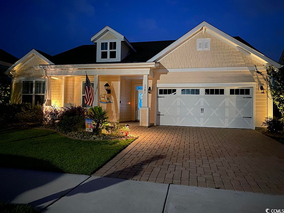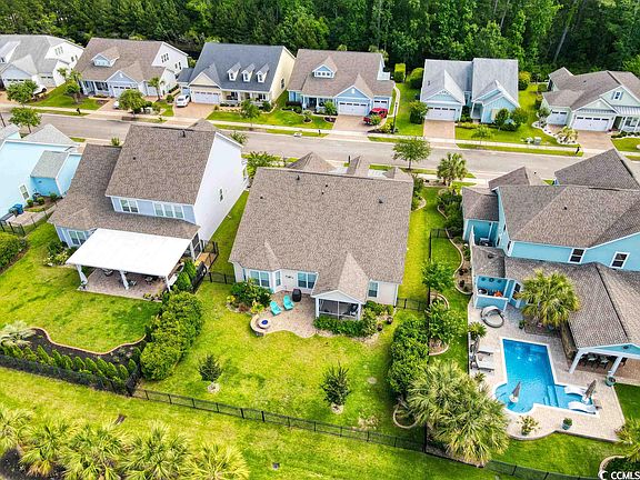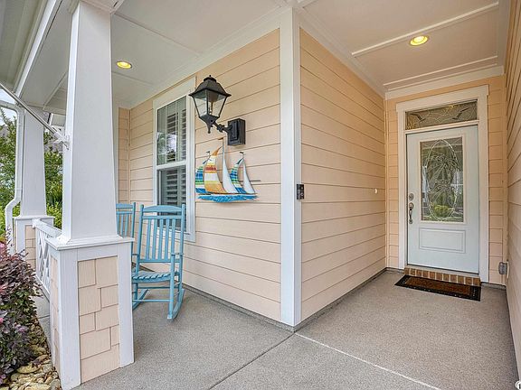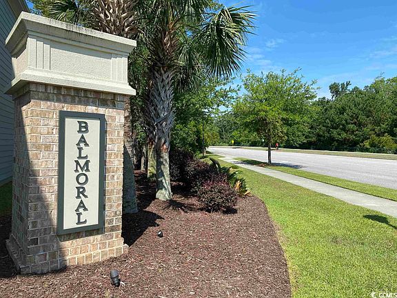 Nestled in the desirable Balmoral neighborhood of Market Common, Myrtle Beach, SC, awaits a charming Southern style ranch home that combines comfort and elegance. Its welcoming front porch invites quiet contemplation, while the eco-friendly natural gas community ensures sustainable living. Step inside to discover a spacious foyer leading to two cozy guest bedrooms and a bath. Further down the hall, a den transitions seamlessly into an open-plan living, dining, and kitchen area, featuring quartz countertops, an island with seating, and stainless steel appliances with a large custom pantry A conveniently placed laundry room and ample storage spaces add to the home's practical charm. The primary bedroom offers a serene retreat with a tray ceiling and an en-suite bath featuring a large walk-in tiled shower, a double-sink vanity, and a generously sized walk-in custom closet. Transition easily from indoor to outdoor living with a screened porch and paved back patio, featuring a firepit for cozy evenings. A beautifully landscaped yard with an irrigation system completes the appeal of this beautiful home.  Custom Plantation shutters throughout, fenced back yard with  extended bumped out garage for your golf cart!  Don't miss this opportunity to find your forever home in Balmoral, Myrtle Beach.