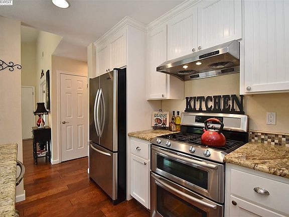 Private court location and near open space and walking trails. Lovely move in ready single story duet. Beautifully upgraded kitchen with modern white soft close cabinets and drawers, granite slab, stainless appliances, updated bathrooms, engineered hardwood flooring, tile flooring, fireplace, inside laundry, a/c, detached 2 car garage, nice yard with lawn area, patio, raised garden beds, and potting bench. Feels just like home.