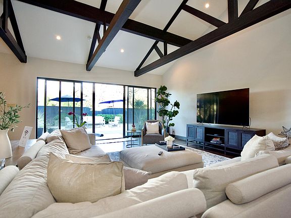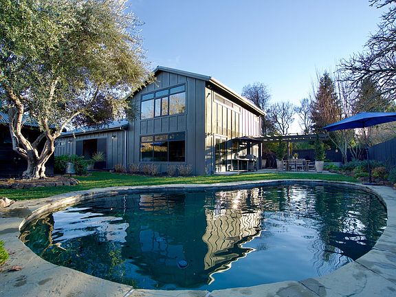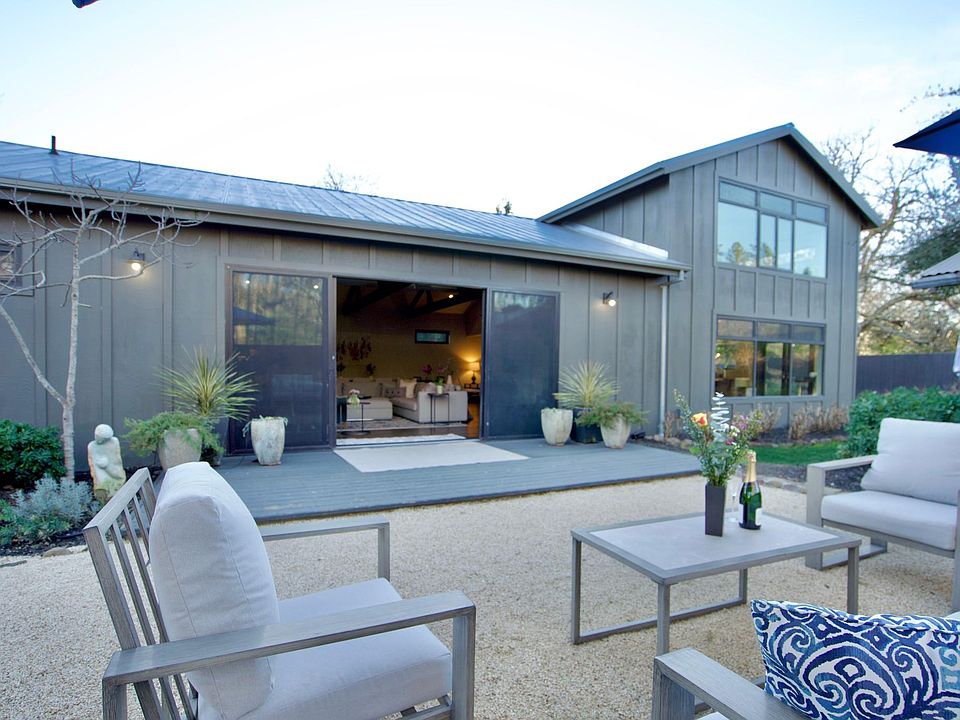 Contemporary Barn with open floor plan and 18ft ceilings in main house. Detached guest house, pool and extensive gardens.