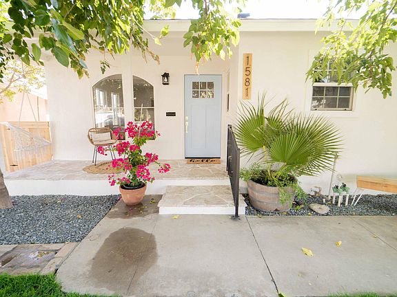 Charming home with elegant curb appeal, a spacious front yard, manicured landscaping, mature trees, a porch swing, and a covered front porch. As you walk up to the front door you will enjoy wrought iron accents, white stucco walls, flagstone steps, and a brand-new roof. The front door leads directly into an open-concept living space that has great natural light and is perfect for entertaining. The living room has an exposed beam ceiling, a cozy arched fireplace, and light beachy floors. Remodeled kitchen which is both functional and beautiful. The kitchen has quartz countertops, a large kitchen island, a full pantry, floating shelves, and name-brand appliances including a stainless steel Wolf oven, and stainless steel Jenn-Air refrigerator. The master suite includes a generous-sized bedroom, a custom closet, a versatile laundry and storage room, a private renovated bathroom with antiqued brass finishes, and private access to the back-covered porch. Down the hall features an oversized primary bedroom, a second bedroom, and an updated full bath. The second bedroom would also work wonderfully as a home office or nursery. The backyard is secluded and completely fenced in. There is a large covered patio perfect for outdoor dining, a cozy firepit, and an open sitting area. The patio connects to a great outdoor entertaining area. Towards the back of the yard, there is a pathway that leads to a huge attached second lot ready for endless possibilities... ADU, workshop, RV parking, pool, garden, etc. The opportunities are endless. The Prosperity Avenue amenities are not far from the home which include the Tulare Outlets Shopping Center. Come experience this unique home before it's gone!